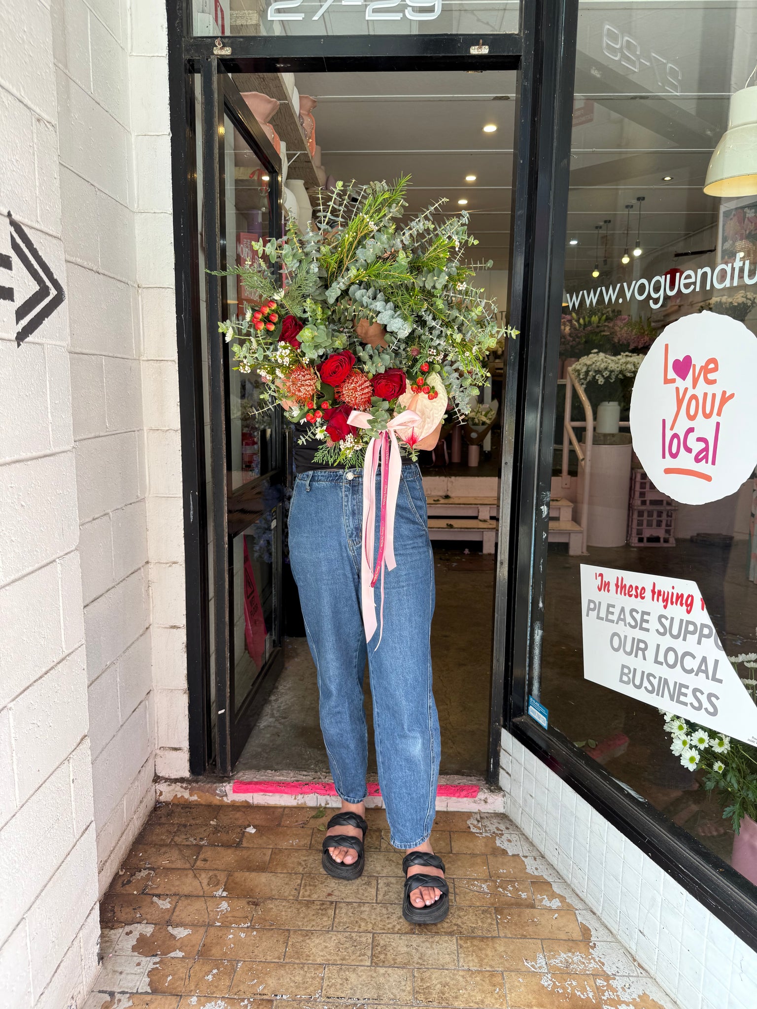 BEAUTIFUL SEASONAL FLOWERS & FOLIAGE ARRANGED IN OUR FATHER CHRISTMAS WREATH, PERFECT FOR YOUR FRONT DOOR OR CENTREPIECE FOR YOUR TABLE.