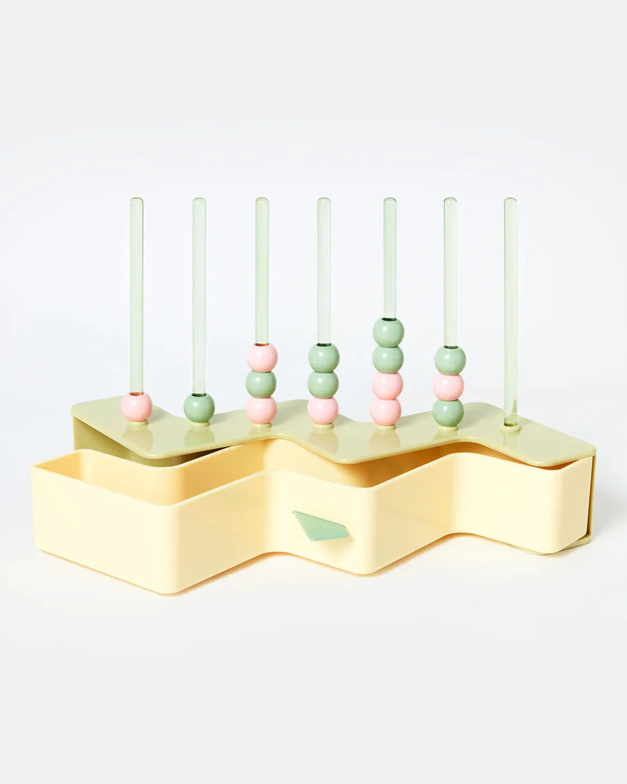 All the pieces fit snuggly into the zigzag box or display it proudly on the shelf or coffee table.